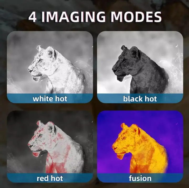 Each mode helps you read the scene in a different way. For example, white hot is ideal for general observation, while red hot or fusion can highlight targets faster against complex backgrounds. Users can switch modes quickly to match changing weather, background temperature, or mission type.